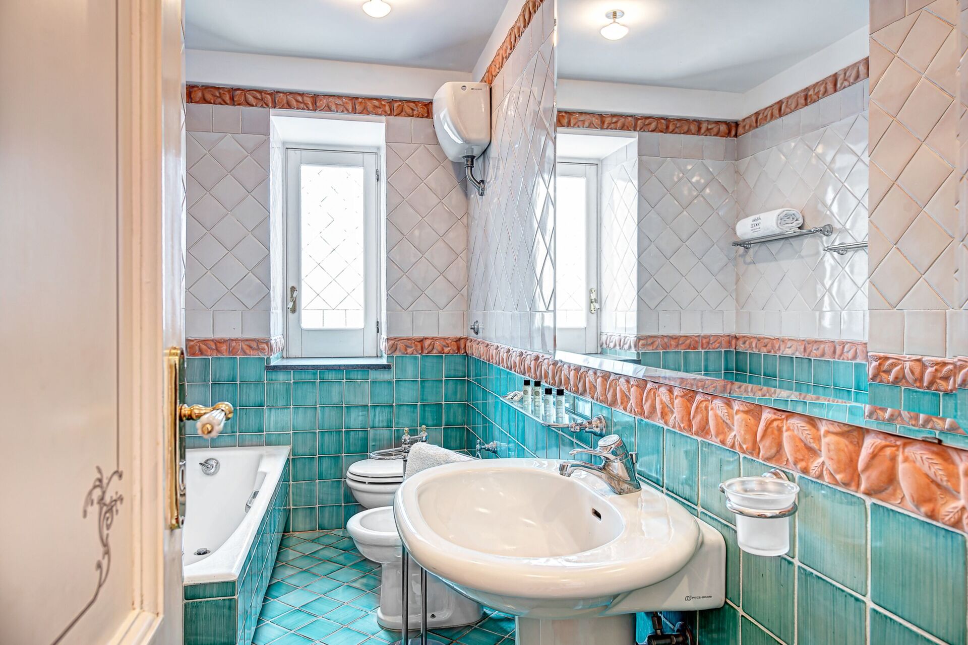 Aria condizionata, Asciugacapelli, Bidet, Doccia, Internet WiFi, Lavandino, Letto matrimoniale, TV Satellitare, Uscita sulla terrazza, WC