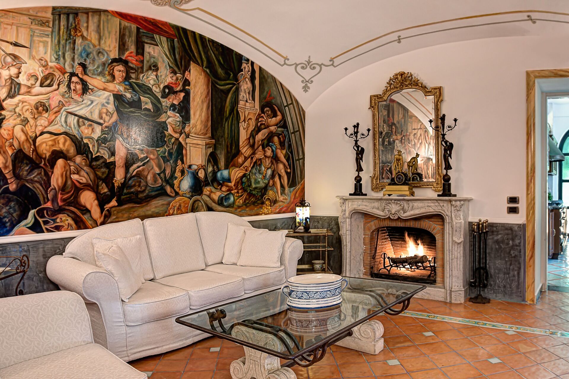 Palazzo Villa Dei Nobili al piano terra si apre sul salotto formale che vanta una selezione di opere d'arte classiche alte pareti e arredi regali. Gli alti soffitti e le porte ad arco della villa si aggiungono all'atmosfera maestosa che questa villa emana. La grande scala in legno decorata, una caratteristica principale del soggiorno, si snoda al secondo piano della villa dove si trovano la zona notte.