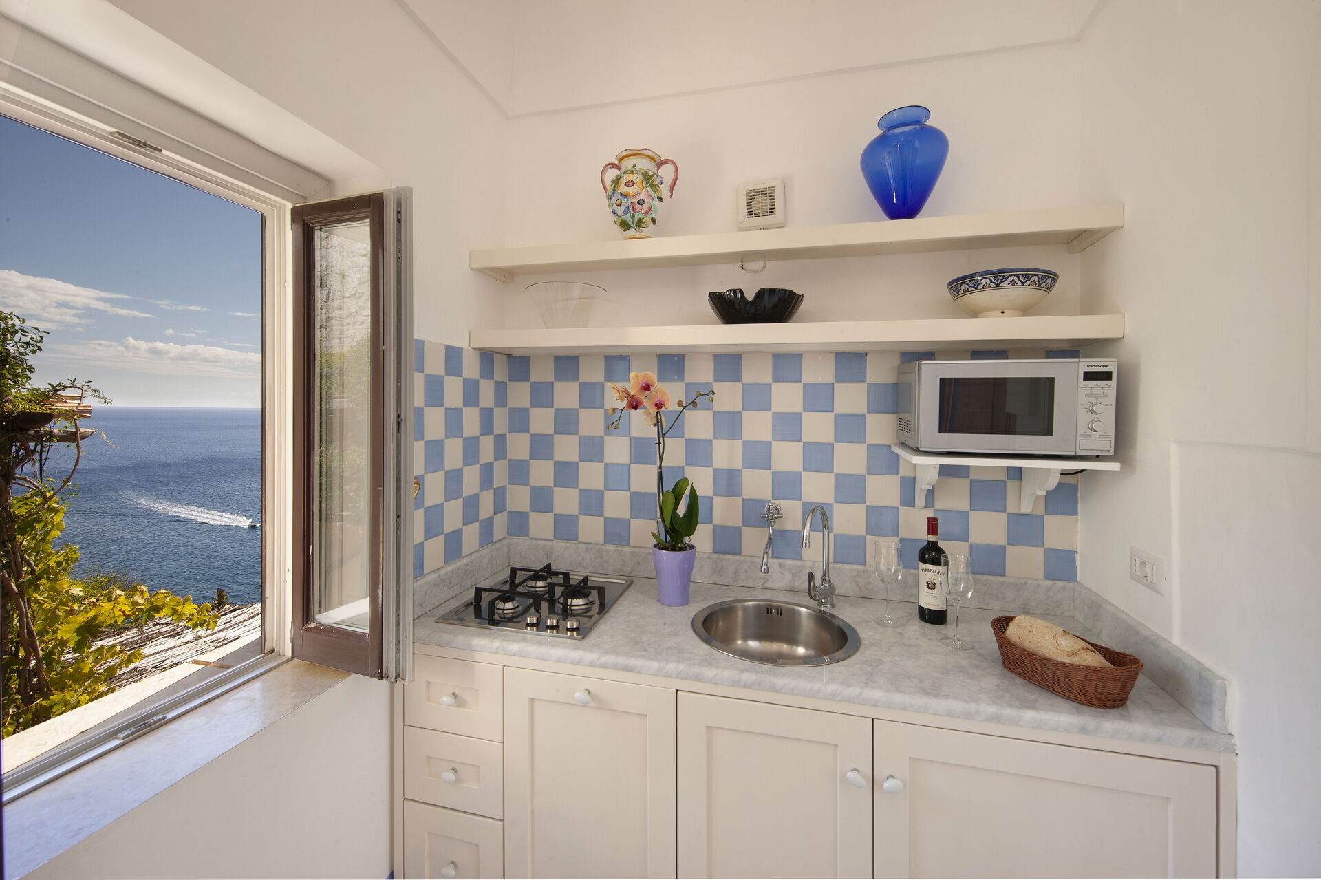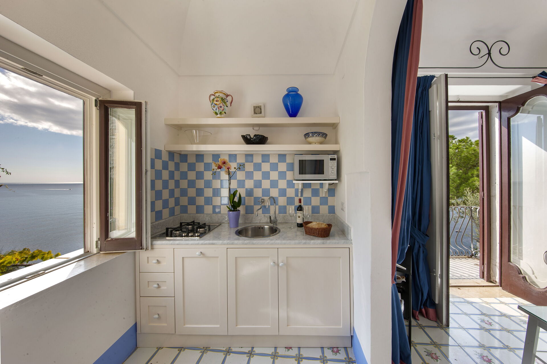 Cisterna Piccola - L’alloggio dispone di una spaziosa camera matrimoniale con letto king size e bagno privato, un secondo bagno, un accogliente soggiorno con divano, una cucina completamente attrezzata e una terrazza privata da cui godere di una vista mozzafiato sul mare e sul paesaggio circostante. Balconi aggiuntivi completano l’esperienza di vivere all’aperto in uno dei luoghi più suggestivi della Costiera Amalfitana.