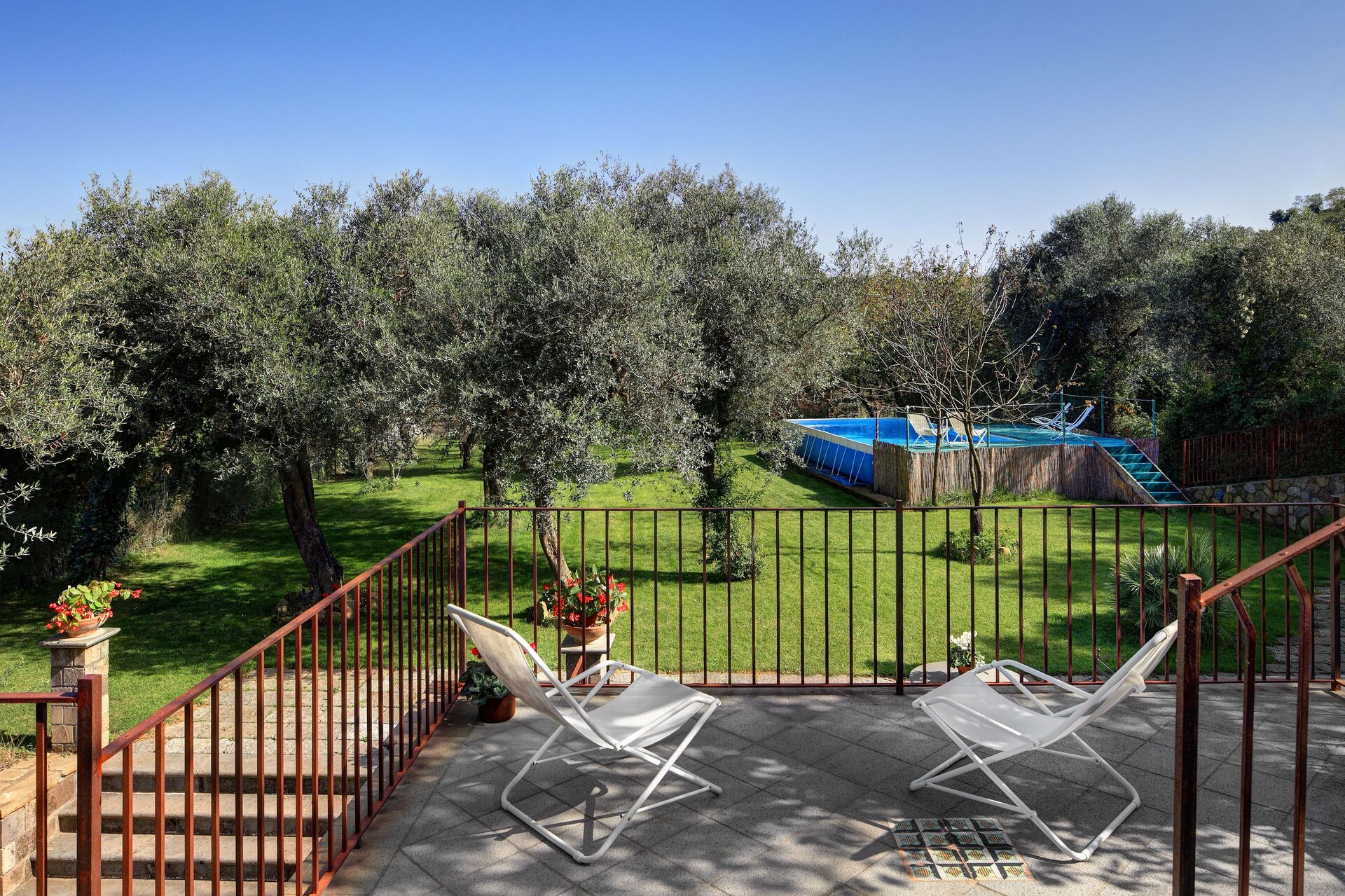 Questa magnifica villa indipendente è circondata da 2000mq di lussureggianti giardini mediterranei con uliveti e altra flora autoctona tipica della zona. Ci sono due terrazze separate ai piani superiore e inferiore e una piscina fuori terra (5m x 8m) con piattaforma a livello e una terrazza con giardino con una cucina esterna semi-chiusa dotata di barbecue in stile argentino e forno per pizza a legna.