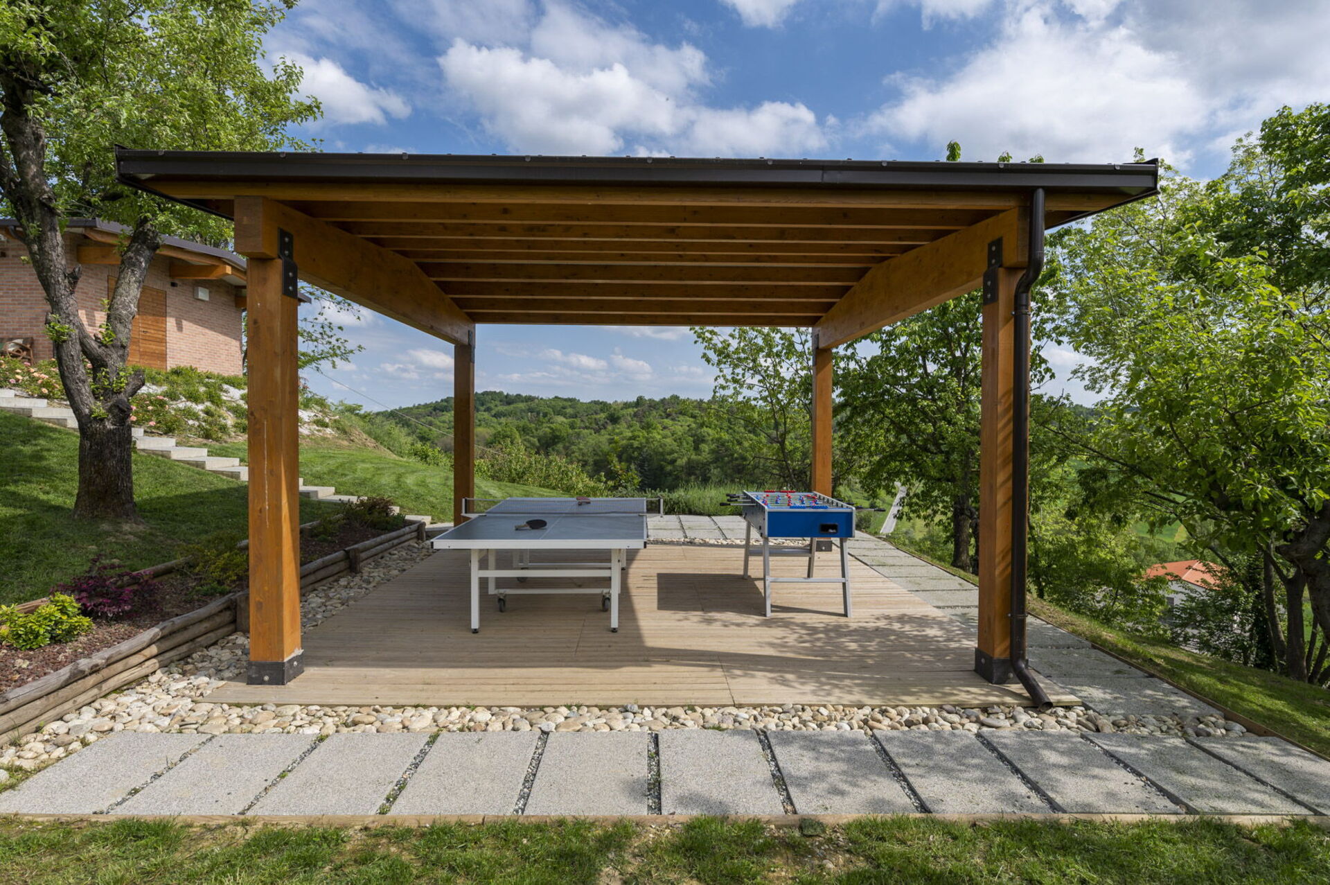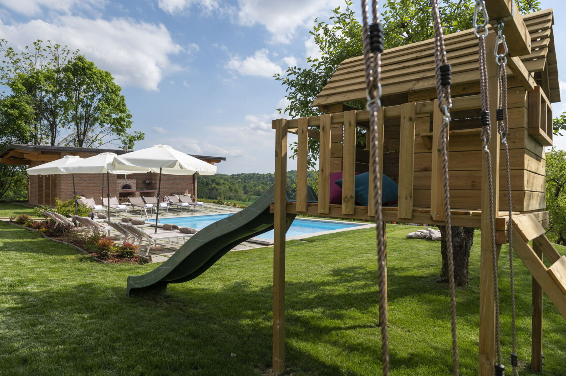 Casa San Grato è una grande villa ristrutturata con cura nel 2020 particolarmente adatta alle famiglie, con una magica piscina (5 x 8 x 1,5), dove rilassarsi al sole; una tettoia con ping-pong e calcetto, per i momenti più attivi; un'area attrezzata per il gioco dei bimbi; un forno a legna per pizze e un barbecue a gas, per i più golosi; una pic-nic area con due tavoloni e panche sotto un grande castagno e una cantina, affittabile per degustazioni private.
