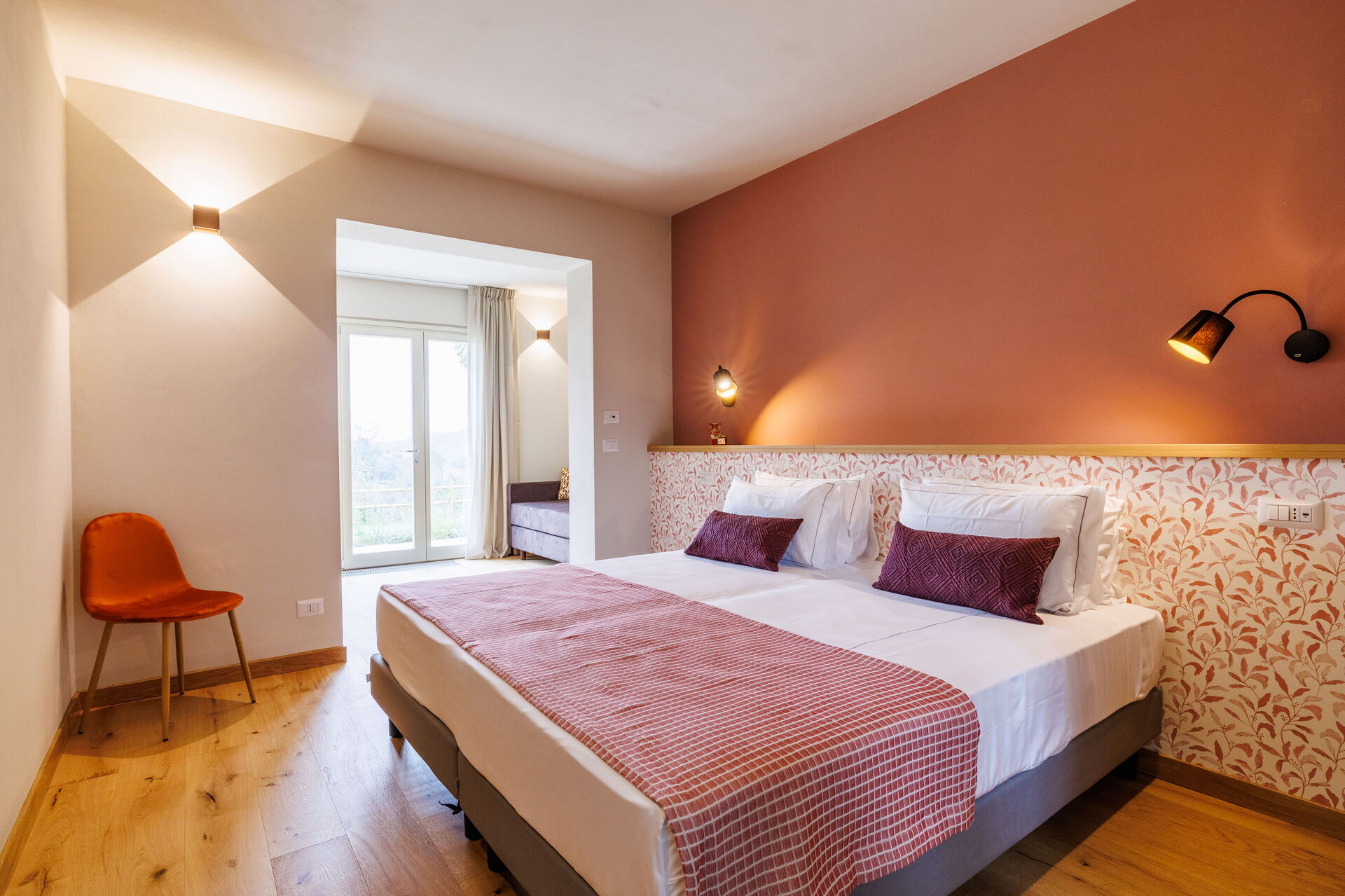 Salendo al primo piano, ulteriori sette camere matrimoniali, una con mansarda con due letti singoli. Ogni camera ha il suo bagno privato provvisto di vasca o doccia. Queste stanze spaziose e ben illuminate sono progettate per offrire l'ultima parola in termini di lusso e comfort. Ogni camera è un rifugio di serenità, con arredi di alta qualità e dettagli attentamente curati. Alcuna camere hanno accesso diretto al terrazzo.