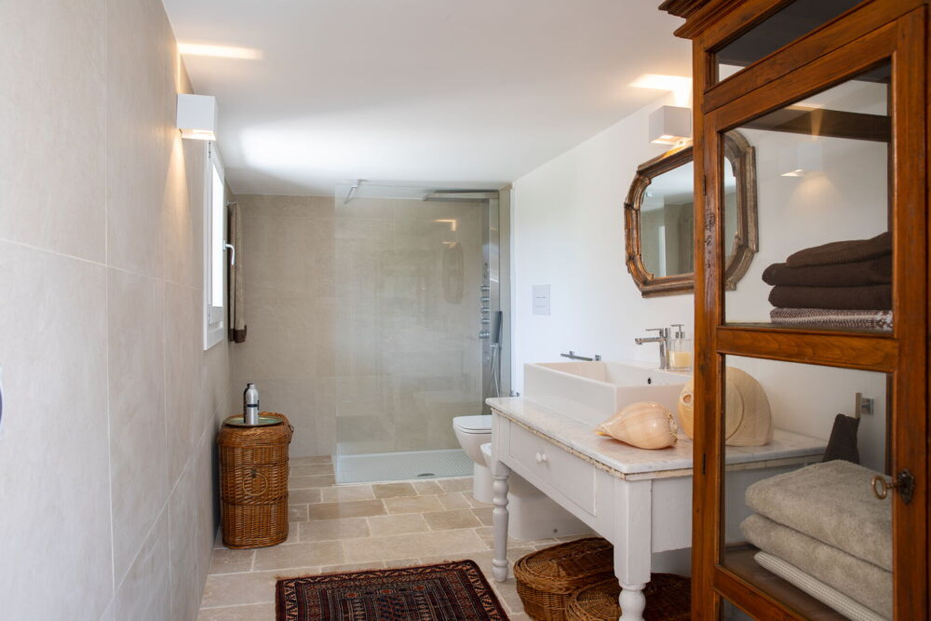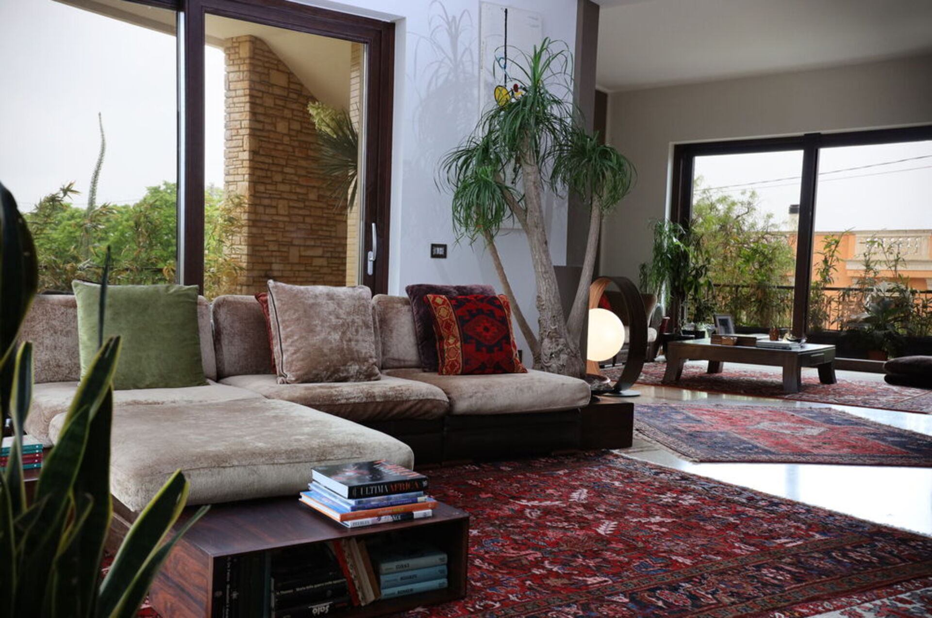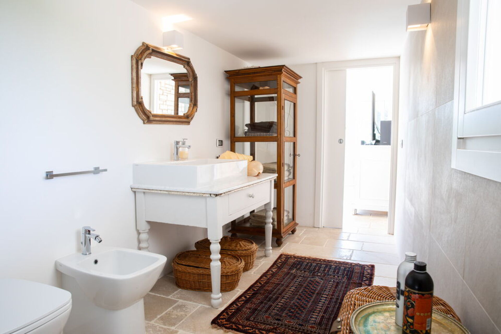 Gli spazi interni sono accoglienti e luminosi e dotati di una grandissima personalità con mobili di pregio e finiture uniche. Infissi in legno con ampie aperture, tappeti colorate al pavimento, lampade di design, segneranno il vostro incantato passaggio da una stanza all’altra in tutta l’area giorno dove tavolini bassi, poltrone e chaise longue vi inviteranno a staccare davvero dalla quotidianità donando pace anche al vostro sguardo.