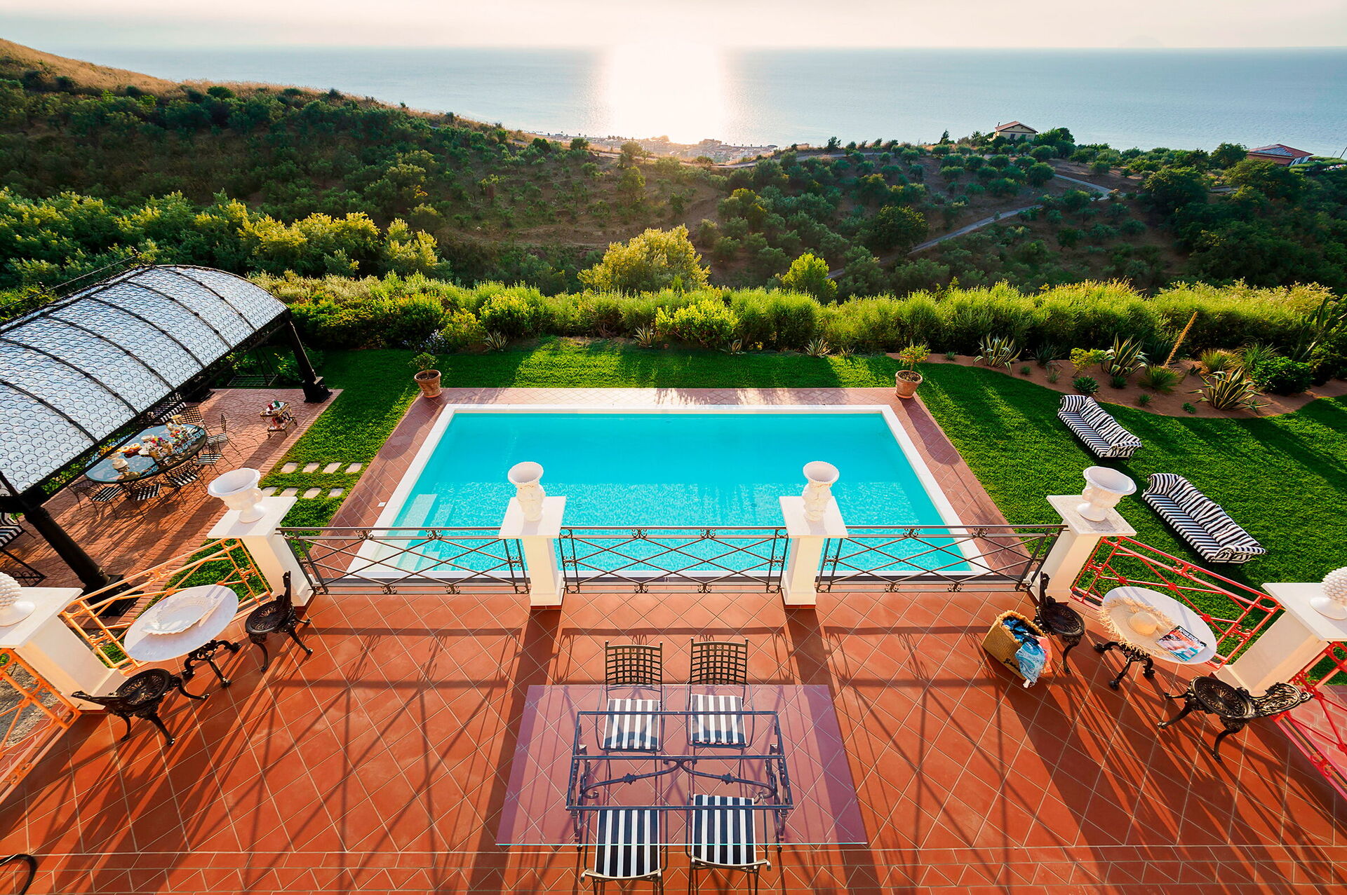 Villa Ester è una dimora lussuosa con grande giardino rigoglioso con piscina (6x12 m, profondità 1,40 m) situata nei pressi di Capo d’Orlando, una rinomata località balneare sulla costa nord della Sicilia. La villa è in una posizione tranquilla, soleggiata e panoramica offrendo un'incantevole vista sul mare e sulle Isole Eolie, particolarmente bella al tramonto. È dotata di varie comodità, tra cui aria condizionata e internet Wi-Fi, è elegante e raffinata, di recente costruzione, con una combinazione perfetta di arredi e materiali pregiati. Pavimenti in marmo, pezzi d'antiquariato e lampadari sontuosi caratterizzano gli spazi interni. Sono facilmente raggiungibili alcune delle principali attrazioni della zona, tra cui le spiagge di Capo d’Orlando, i paesini del Parco dei Nebrodi, Cefalù, l'area archeologica di Tindari, Taormina, l’Etna e le Isole Eolie.