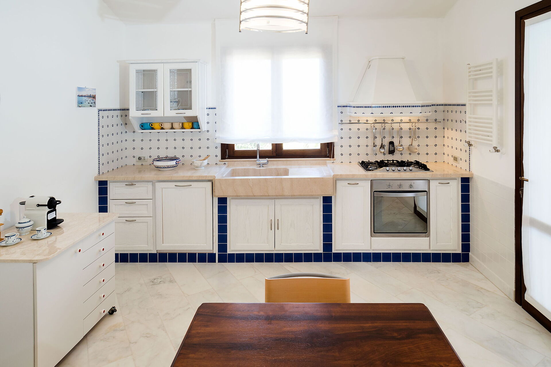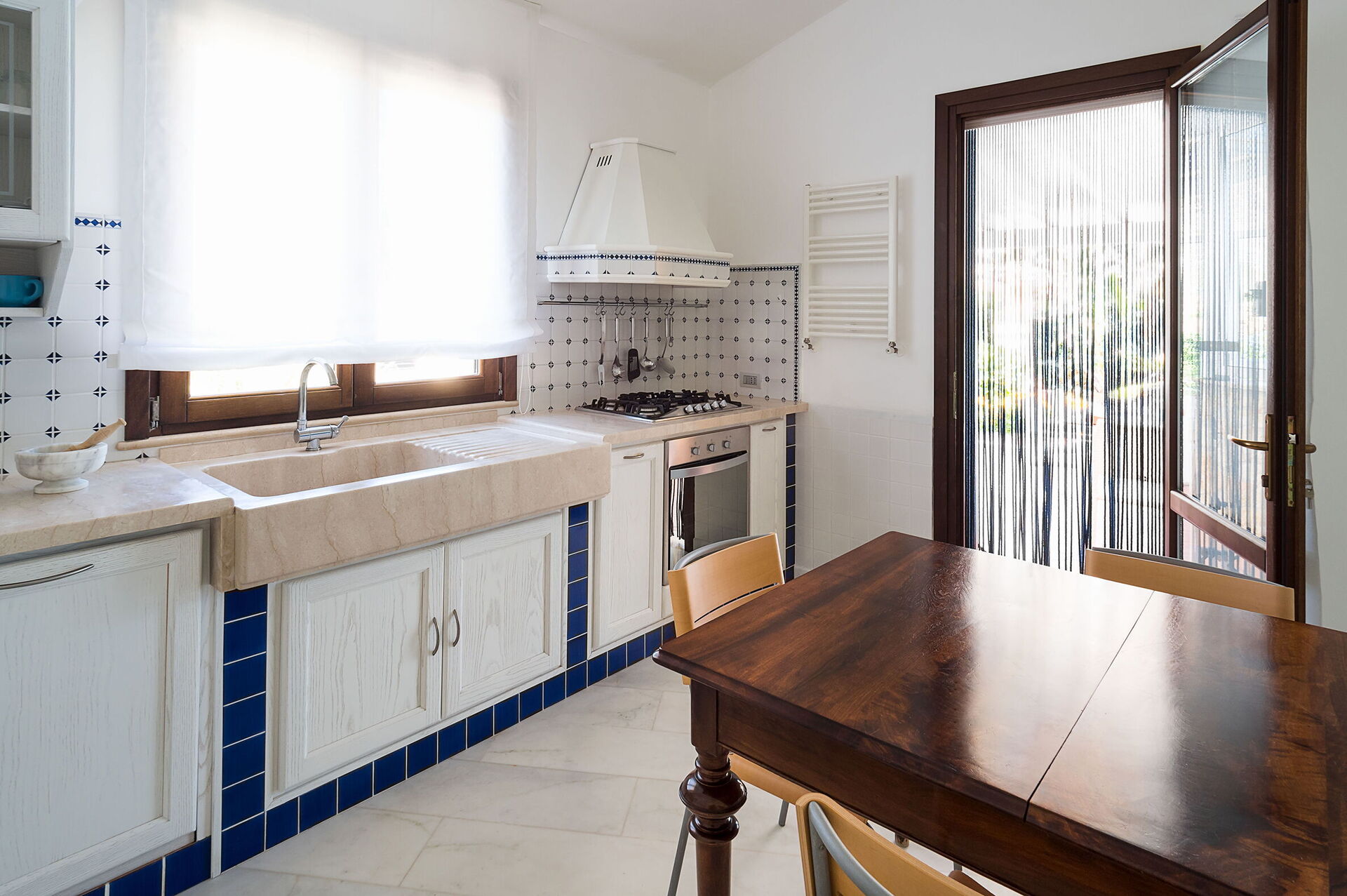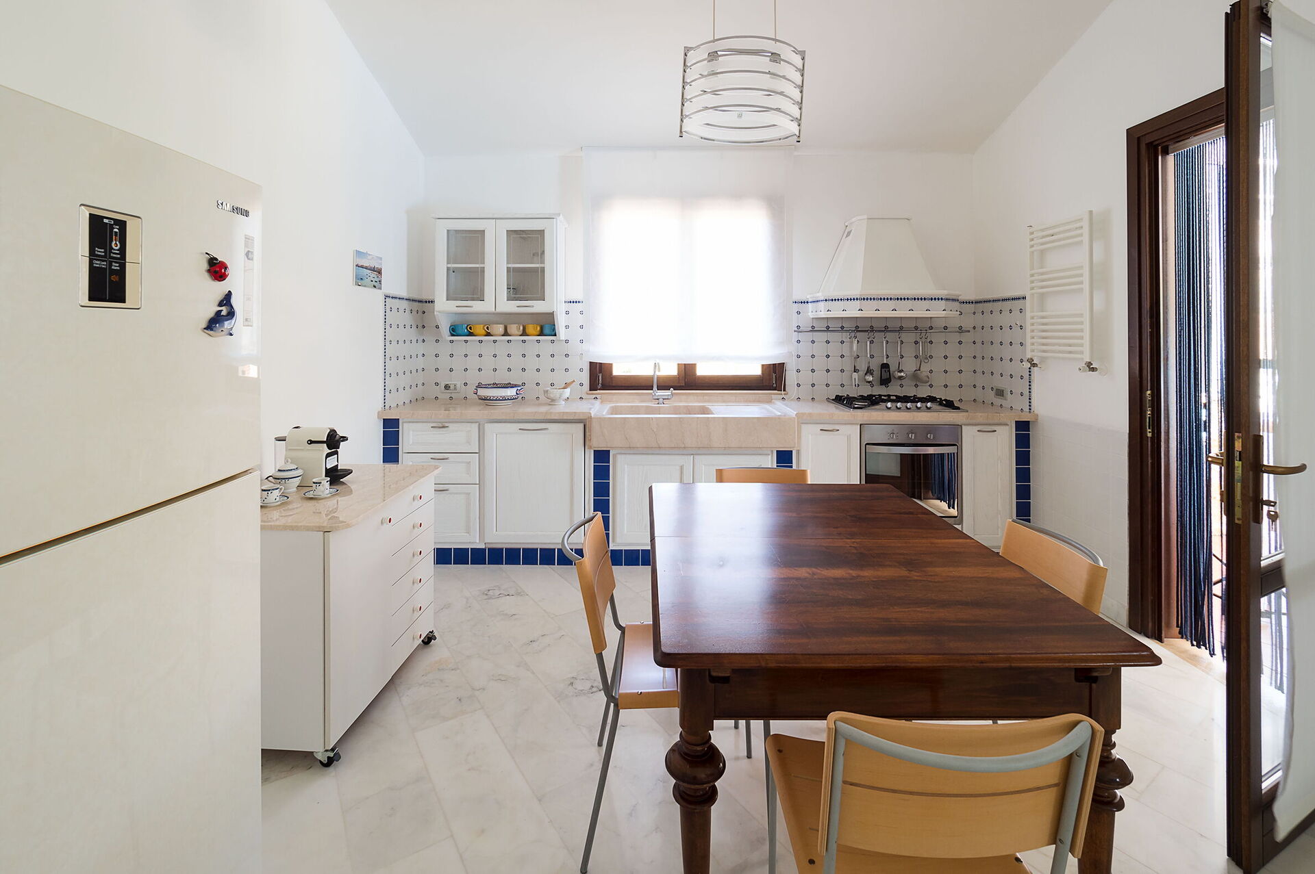 Aria condizionata, Cucina ben attrezzata, Divano, Forno, Freezer, Frigo, Internet WiFi, Lavastoviglie, Macchina da caffè (Italiana), Microonde, Tavolo da pranzo, Tostapane, TV Satellitare, Uscita sul giardino, VCR / DVD, Zanzariere