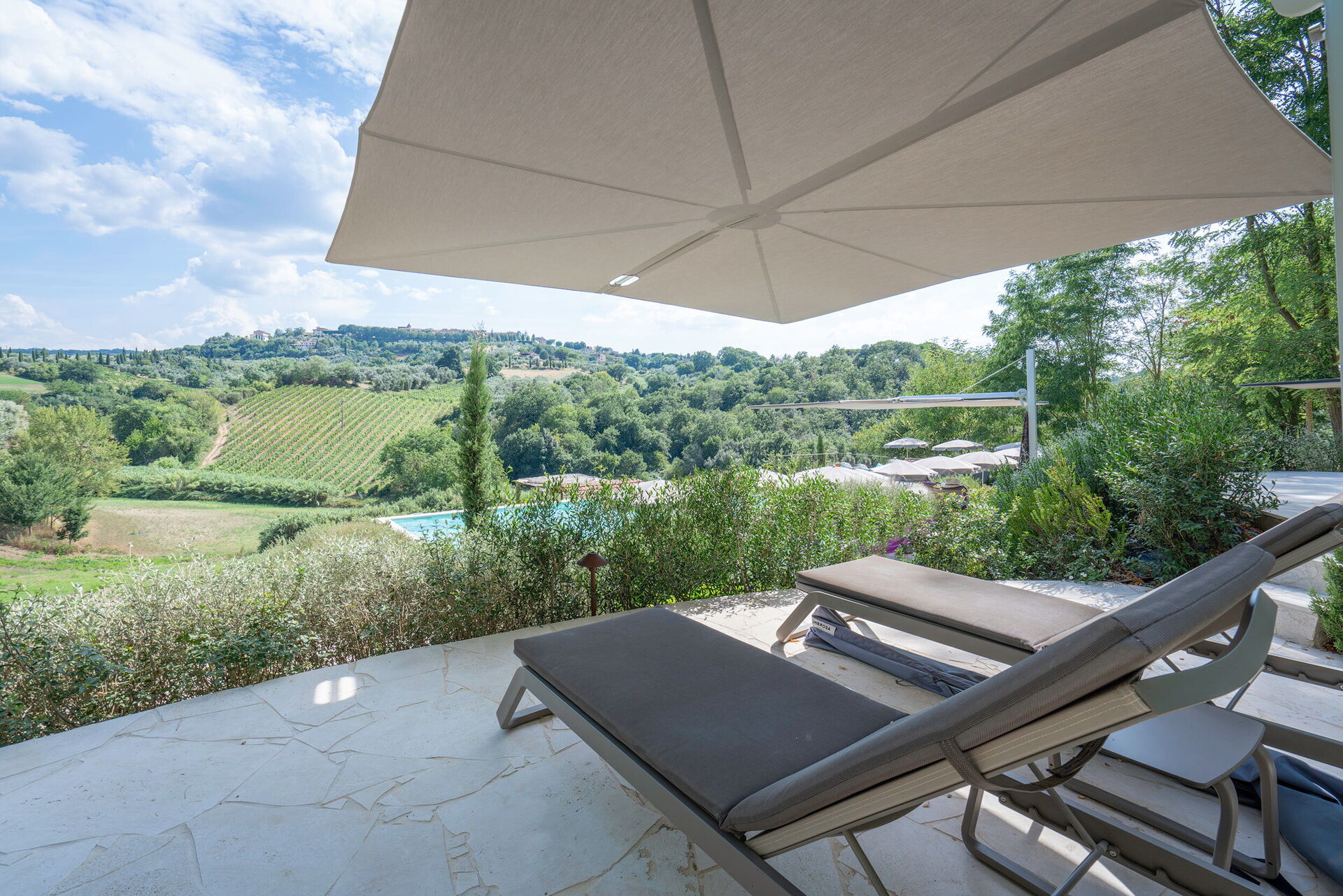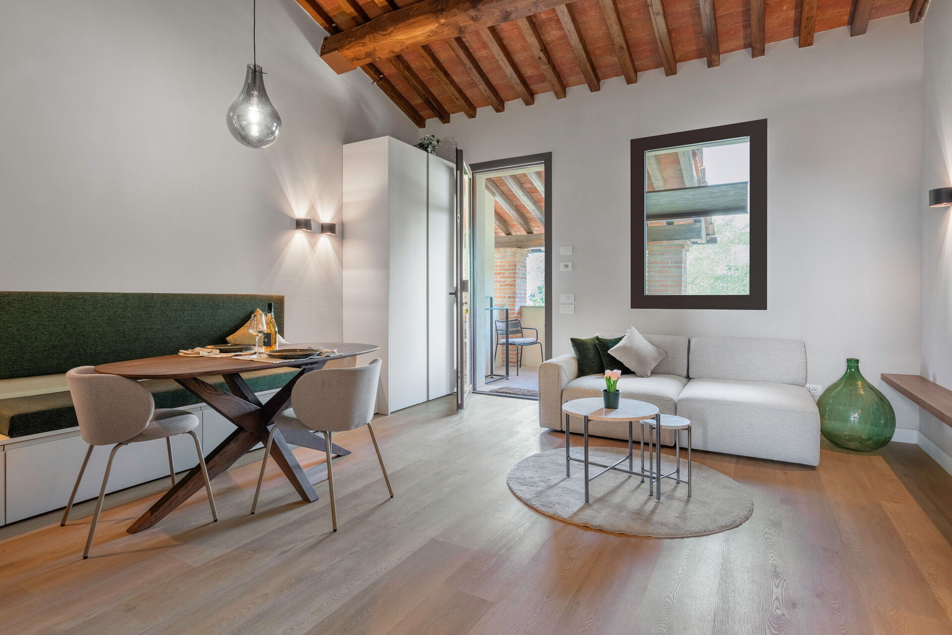 Spereto Correggiolo a Montaione è un appartamento con spazio esterno privato attrezzato e piscina esterna riscaldata. La proprietà di Spereto è in posizione panoramica con vista del borgo di Montaione. Ogni spazio esterno è privato ed arredato accuratamente. La piscina esterna (18x8 1,4m) è in comune e riscaldata. Lo spazio piscina è contornato da un raffinato solarium a gradoni con arredamento esterno e ombrellone per ogni unità abitativa. L'area piscina è completa di wc, doccia esterna e una cucina esterna. Parcheggio esterno all'interno della proprietà. All'interno del Borgo di Spereto non è possibile l'utilizzo delle auto.