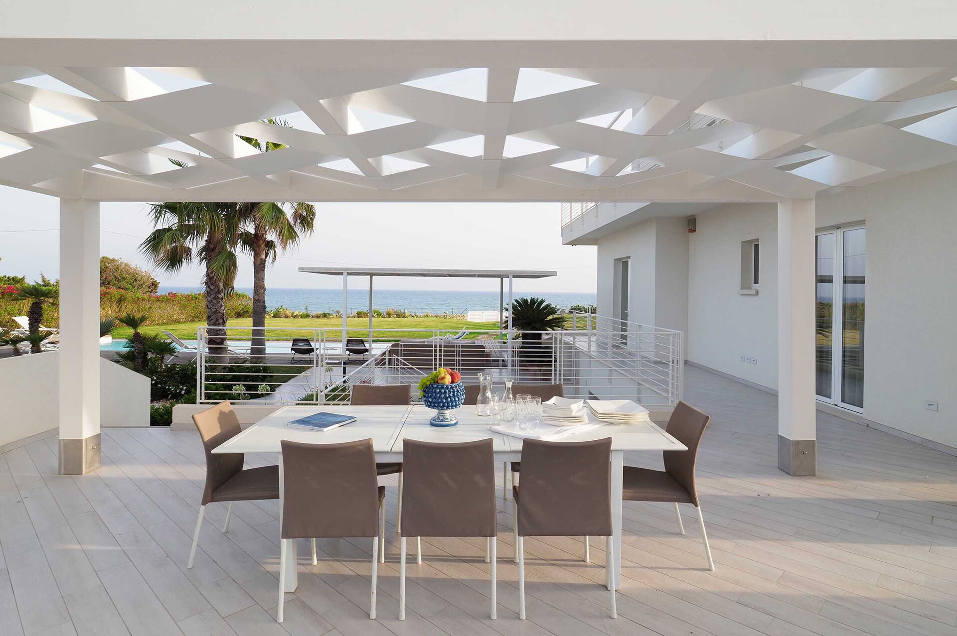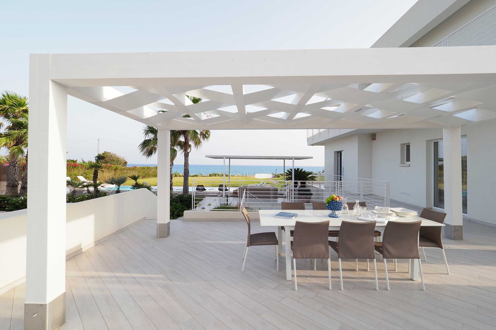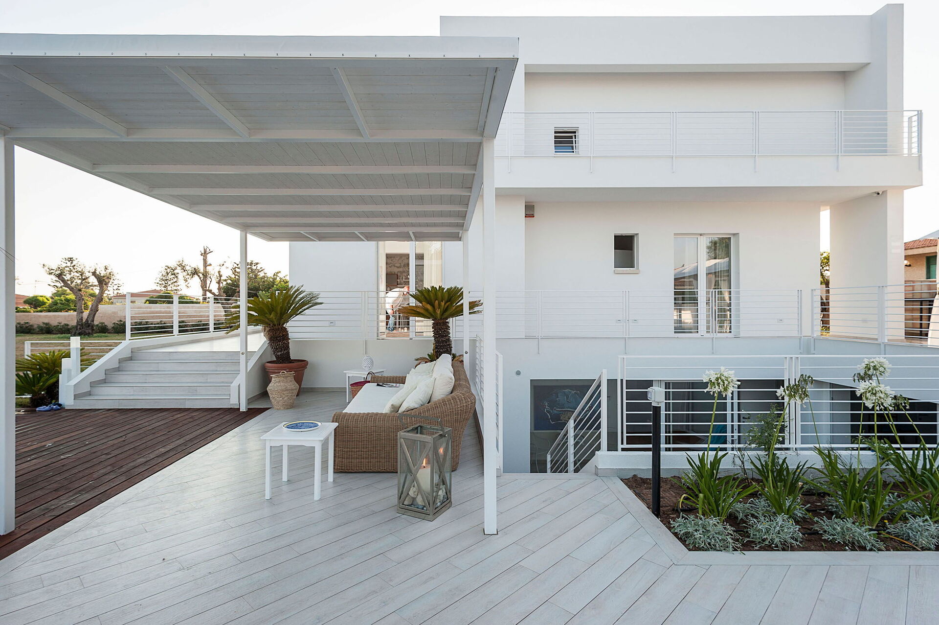Casa Mareblu is a beautiful and modern villa with sauna, hot tub and swimming pool (12x5 m, depth 1.50 m) located on the seafront in Marina di Modica, on the southern coast of Sicily. The house extends over 3 levels and is surrounded by a large well-kept garden with direct access to the sea. Large partially covered terrace, equipped for relaxation and outdoor dining with sea views, barbecue. All rooms are air conditioned. Ideal starting point for visiting the baroque UNESCO World Heritage cities of Ragusa Ibla, Scicli, Modica and Noto, as well as lovely seaside resorts such as Sampieri, Punta Secca and Donnafugata with its nineteenth-century castle.