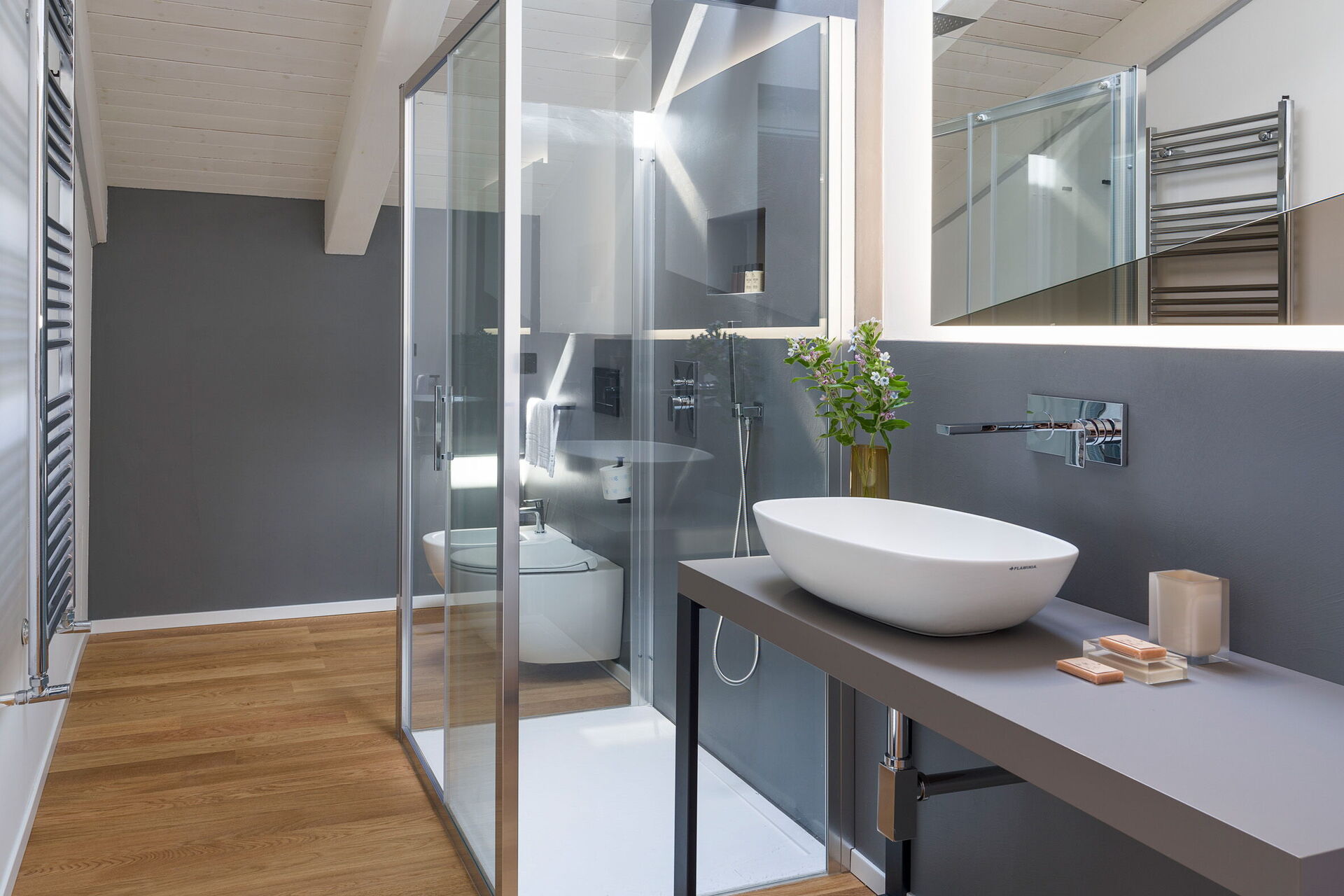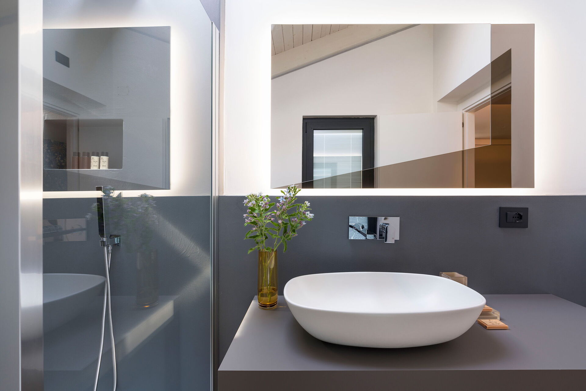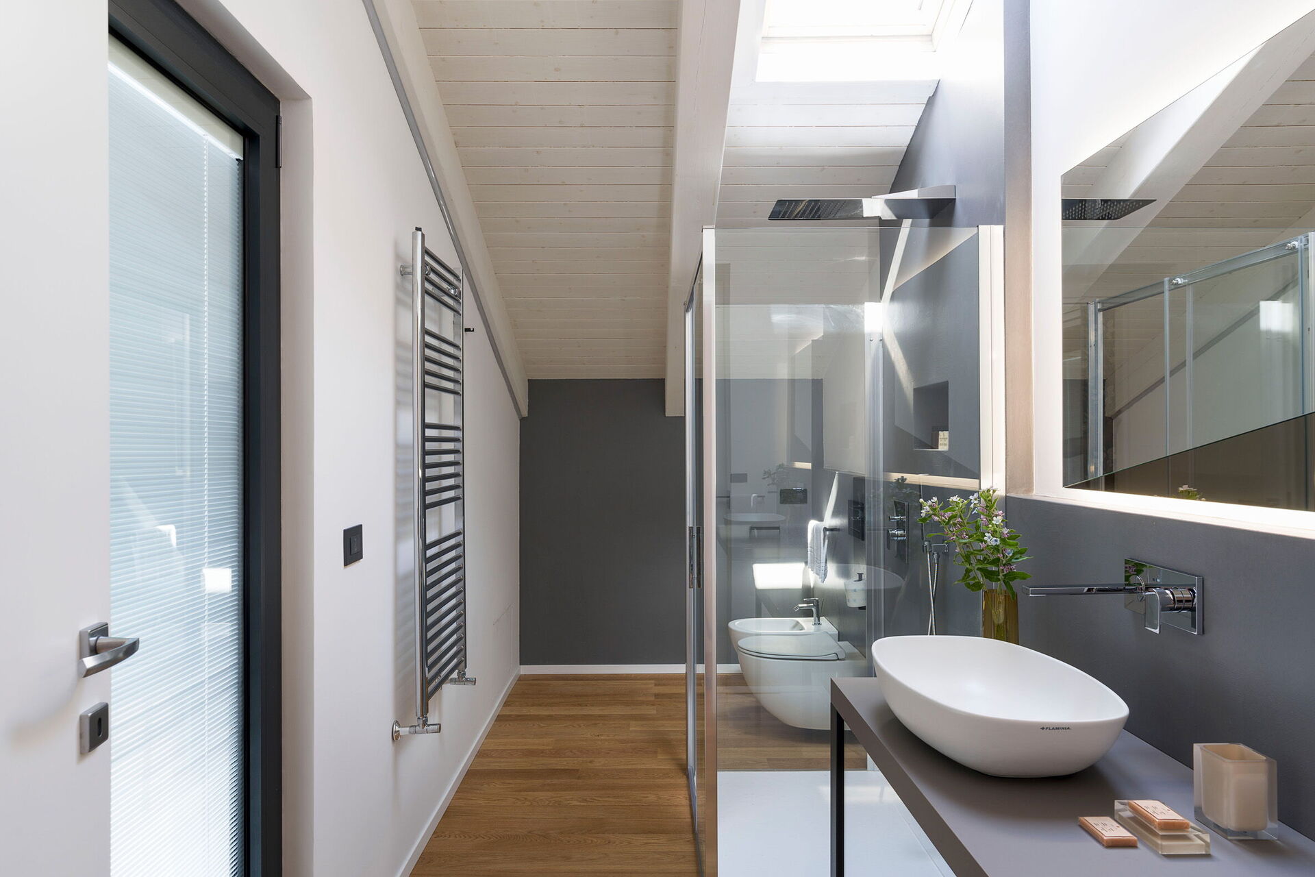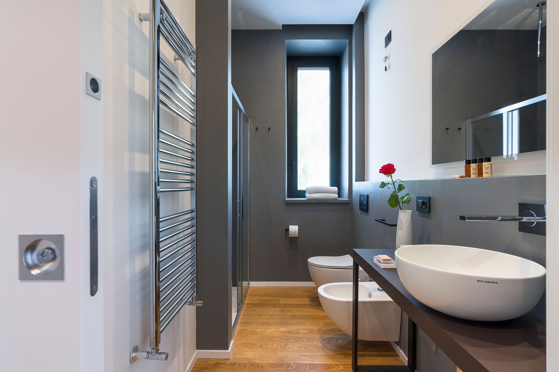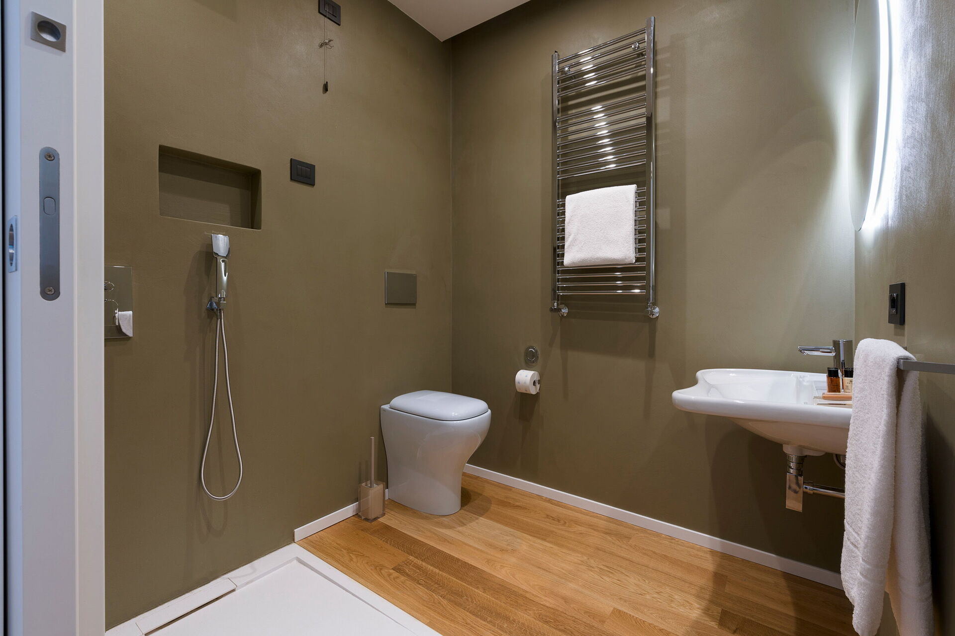 Air Conditioning, Hairdryer, Bidet, Shower, Internet, WiFi Internet, Basin, King Size Bed, Satellite TV, Exit to the terrace, Toilet