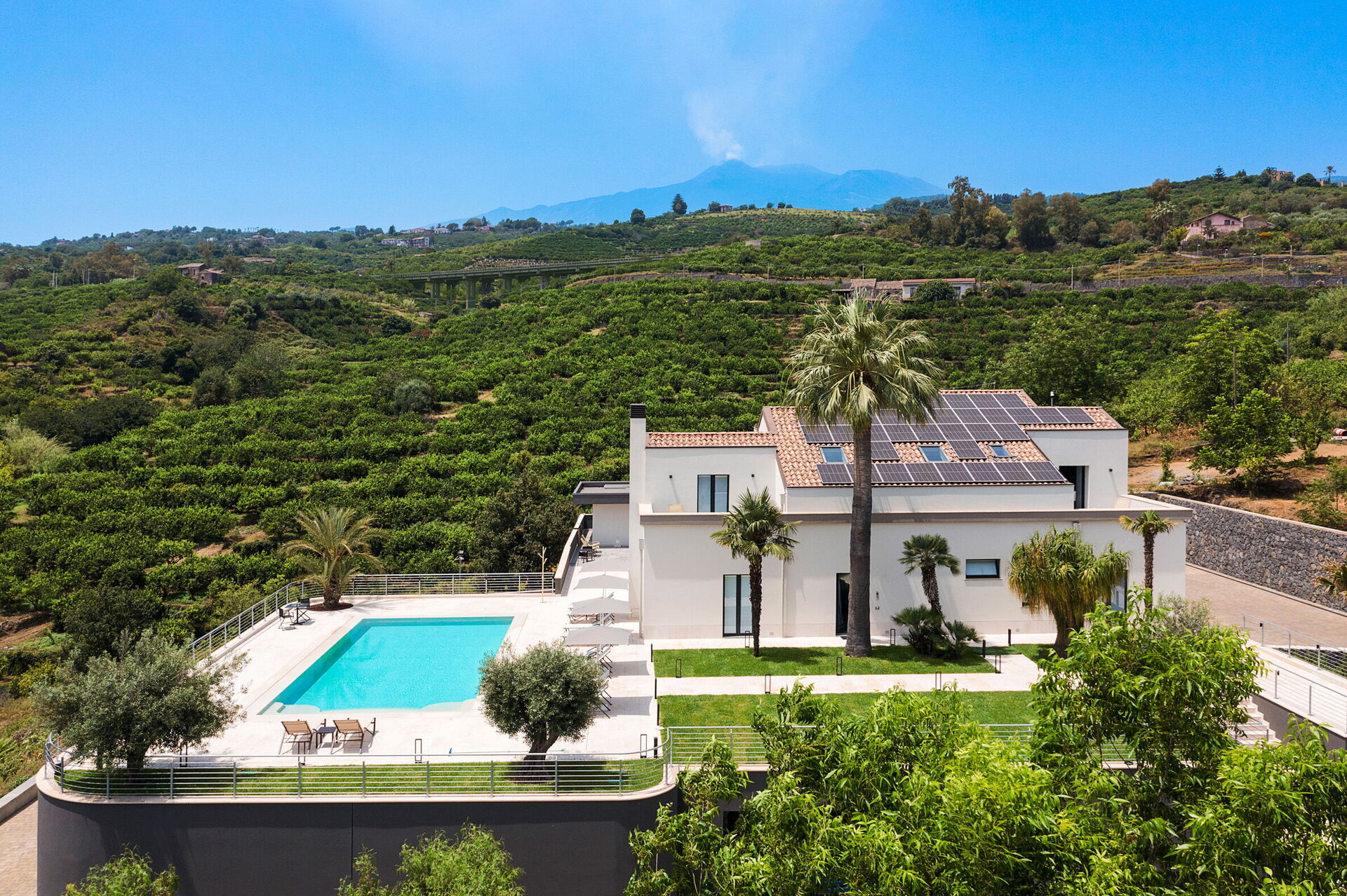Villa Decoro is a splendid and luxurious property with a private panoramic salt swimming pool (6x13 m, depth 1.50 m), located on the eastern side of Sicily, between the slopes of Etna and the sea, about 30 kilometers south of Taormina. The house is surrounded by a large well-kept garden and large terraces equipped for relaxation and with barbecues for outdoor dining with breathtaking views of the countryside and the sea. The house extends over 2 floors, is fully air-conditioned and has underfloor heating and a fireplace, ensuring year-round comfort. Ideal location for exploring the characteristic villages and wonderful natural landscapes of the Etna Park and the most beautiful locations on the Ionian coast, such as the marine area of the Cyclops Islands, Taormina, Catania and Syracuse.