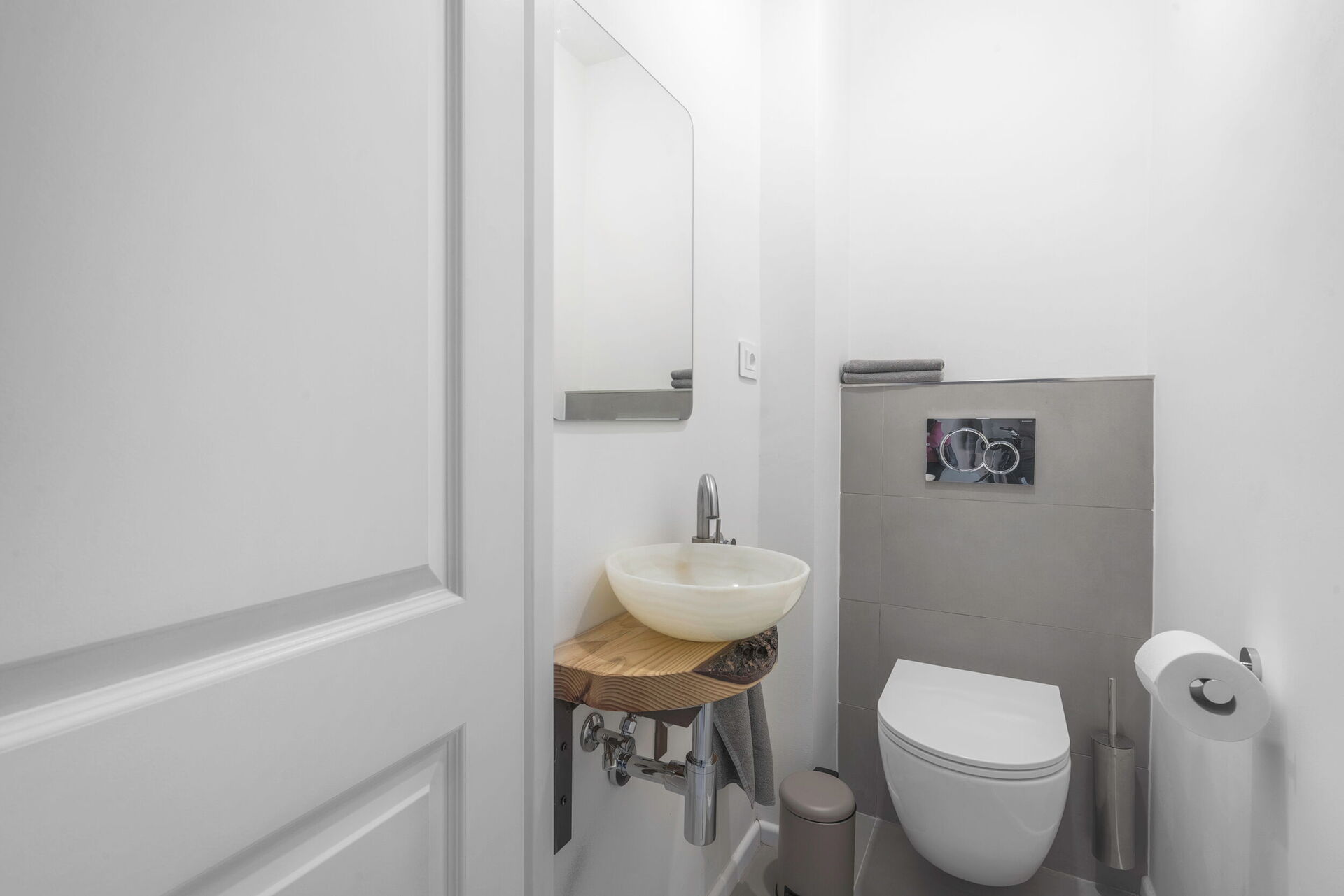 The accommodation is on several levels and consists of kitchen - living room, 2 double bedrooms with en suite bathroom with shower and washbasin. The toilet with washbasin is a separate room. Separate laundry room. Air conditioning with refrigeration. Heating. Parking space at the entrance to the property. Golf car for transporting luggage from the car park to the flat.
