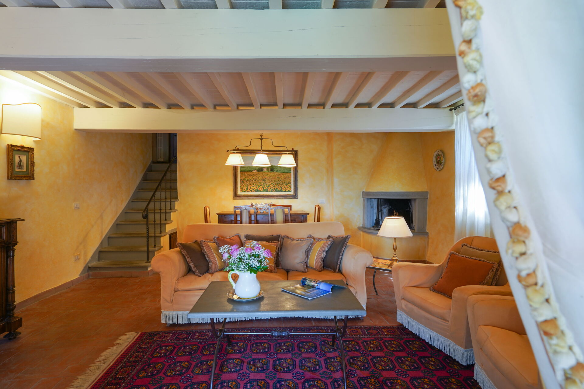 Lovely stone house, on three levels, part of an ancient farm complex that dates back to the late Middle Ages. The property, which in the past was used as cellar to store wine, was recently renovated and furnished with great care and taste. The house is immersed in the green valley of Mugello, a few kilometres from Florence, in a panoramic position and is surrounded by a beautiful fenced garden of 1.500mq. equipped with pool for exclusive use of the guests (9m. x 4m. prof. 140cm.). The property also has a nice porch that can be used for outdoor dining and private parking with charging station for electric vehicles. Wi-Fi. The property is 3.5 km. from "Vicchio" (birthplace of Giotto and Fra Angelico), at 37km. from Florence, 23km. from the "Barberino Designer Outlet" (over 100 stores of major brands of Italian and international fashion) and Lake "Bilancino" (canoeing, sailing, windsurfing), at 20km. the "Poggio dei Medici Golf Club", at 3.5km. riding stables.